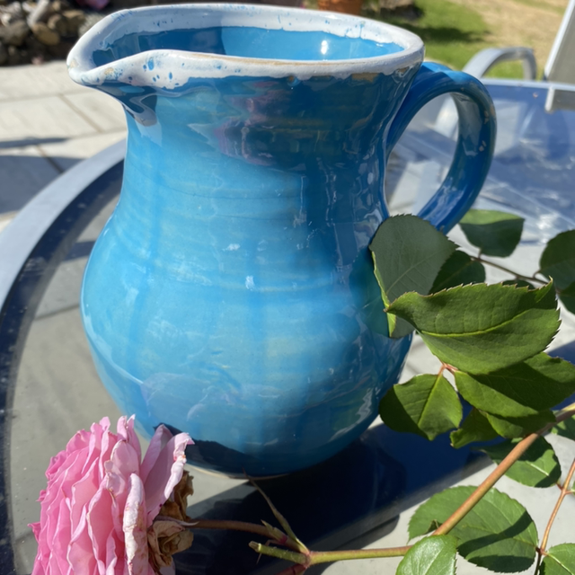 One of a kind. Turquoise flower Vase jug. 7"H x 6"W
