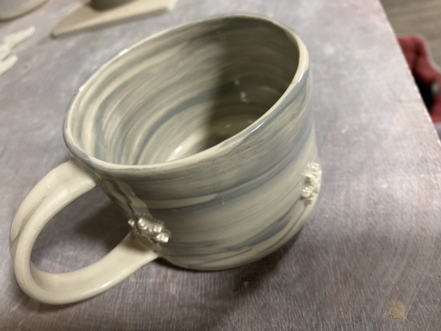 Starry Night Mug. Grey wash glaze adorned with raised stars.